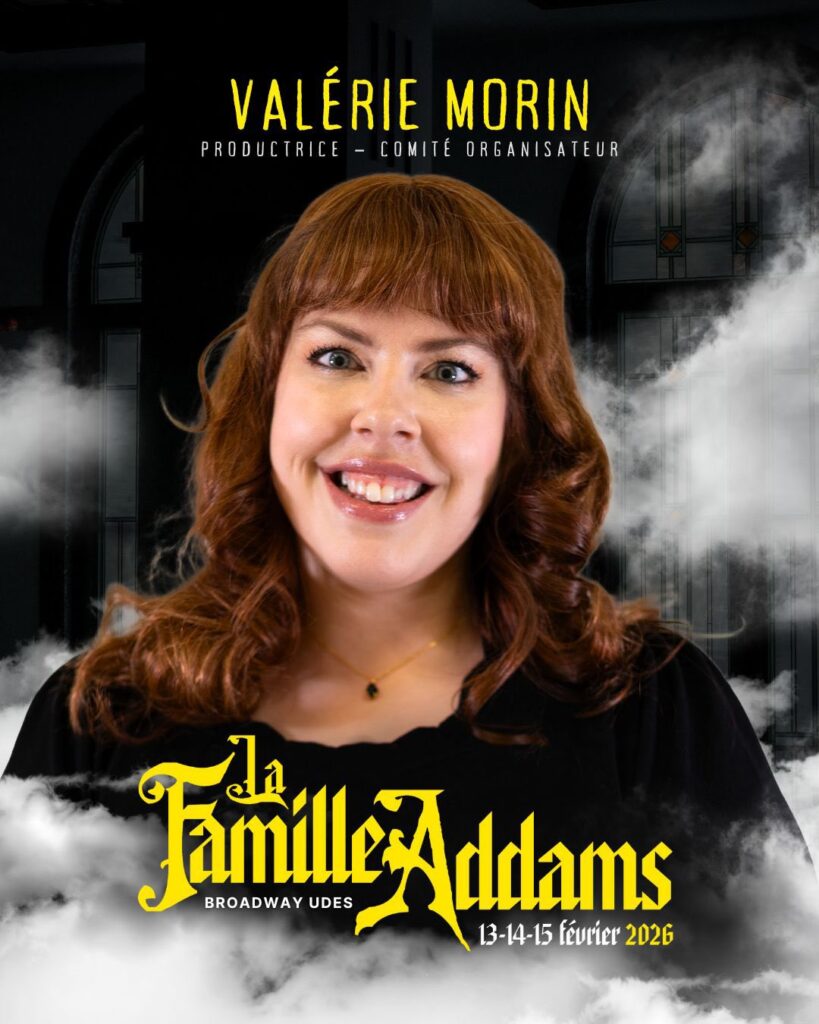 Présenter la même production qu’il y a dix ans, avec l’engouement du retour de La Famille Addams et la série Mercredi, un vendredi 13 pour la 13e production, tout ça a été pensé par l’équipe, explique Valérie Morin, productrice du spectacle cette année, mais qui gravite autour de Broadway UdeS depuis un moment déjà.